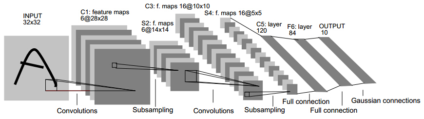 最早的CNN网络,它能够识别0~9的手写数字,但是准确率与SVM相比,还是稍有逊色的。